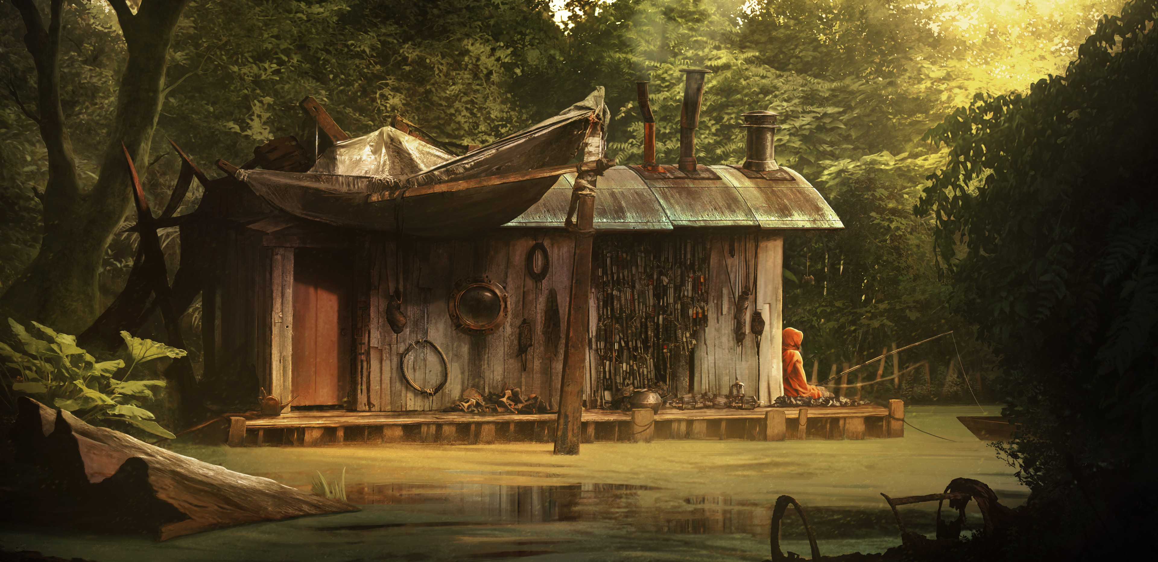 In this little shed lives a hermit who scavenges for materials and tools he can find that were left behind in the old cities.